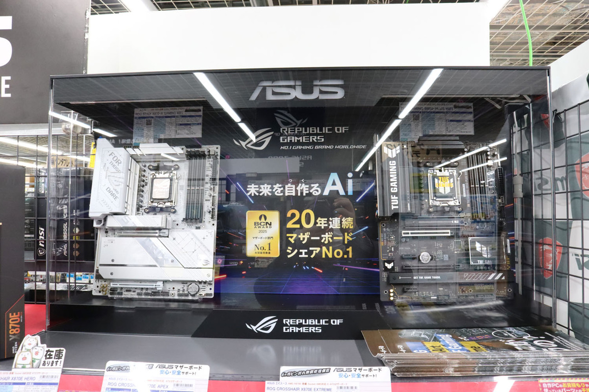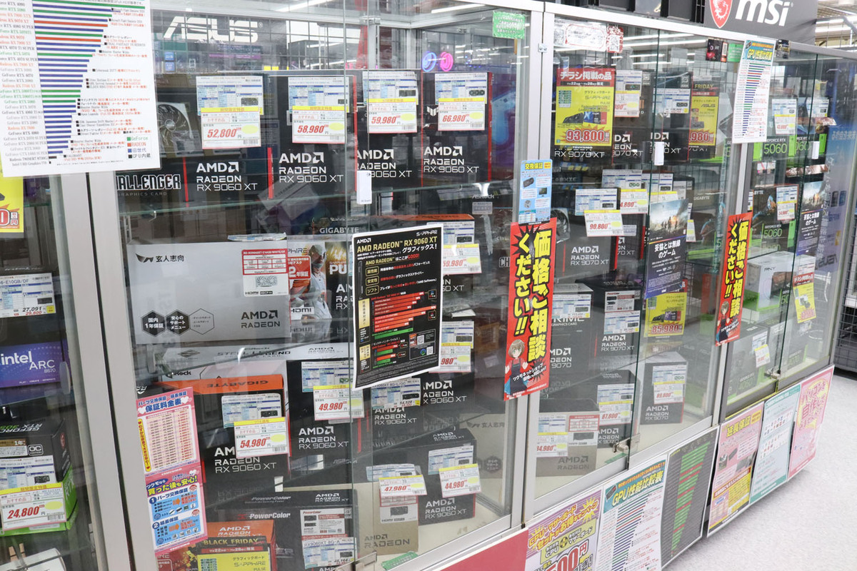 ビデオカードの売れ筋を聞くと、販売数的にはASRock「Radeon RX 9070 XT Steel Legend 16GB」とSAPPHIRE「SAPPHIRE PULSE Radeon RX 9070 XT GAMING 16GB GDDR6」で人気を二分しているという。両者ともリーズナブルな価格帯で、白色で組むならSteel Legend、黒色で組むならPULSEといった棲み分けになっているそうだ。