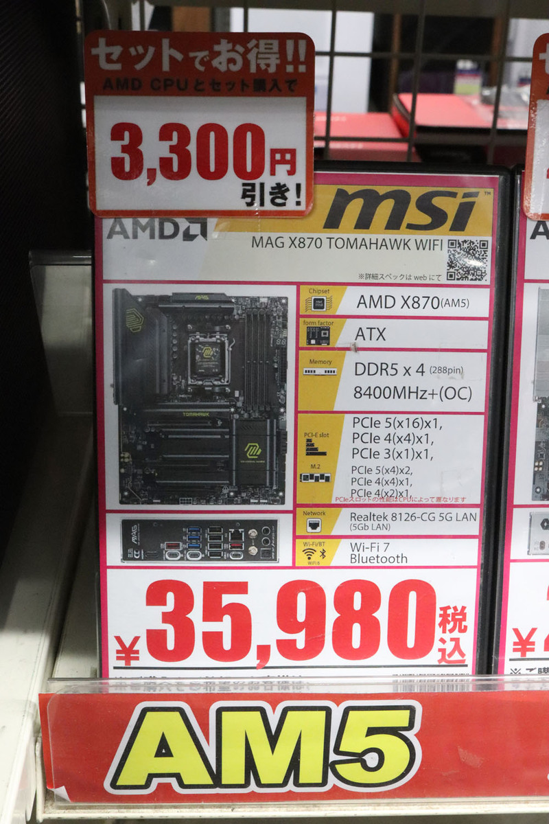 マザーボードの売れ筋については、都度のセール品に大きく動く傾向にあるという。取材時はASUS「X870 MAX GAMING WIFI7」やASUS「B850 MAX GAMING WIFI W」がセール品でよく売れていたといい、やはり売れ筋製品に価格は外せない要素のようだ。