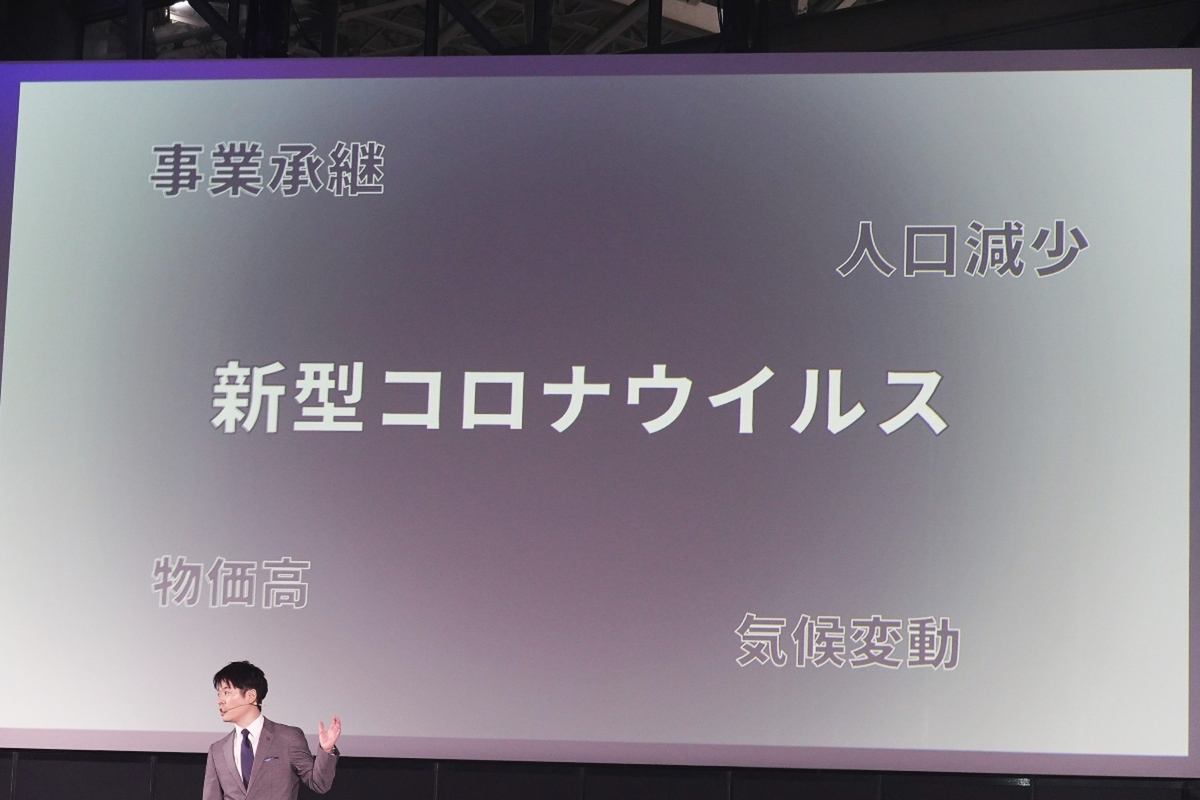 5番手に登壇したイヤタカの大野恒平氏は、コロナ禍を社長と社員とkintoneで乗り越えた、会社再生のストーリーを語った。