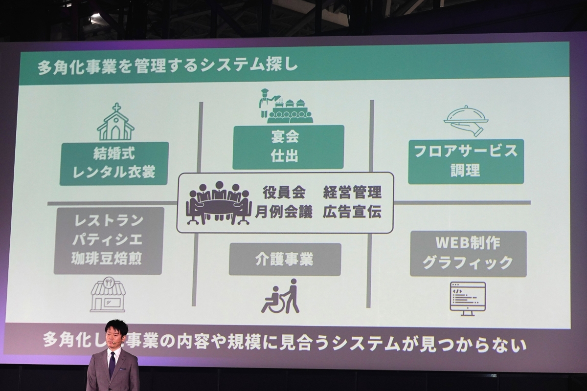 「多角化した事業の内容や規模に見合うシステムが見つかりませんでした。そこで私は、もうひとつの基幹システムをkintoneで構築して、すべての事業を適時把握できる環境作りに挑戦しました」(大野氏)