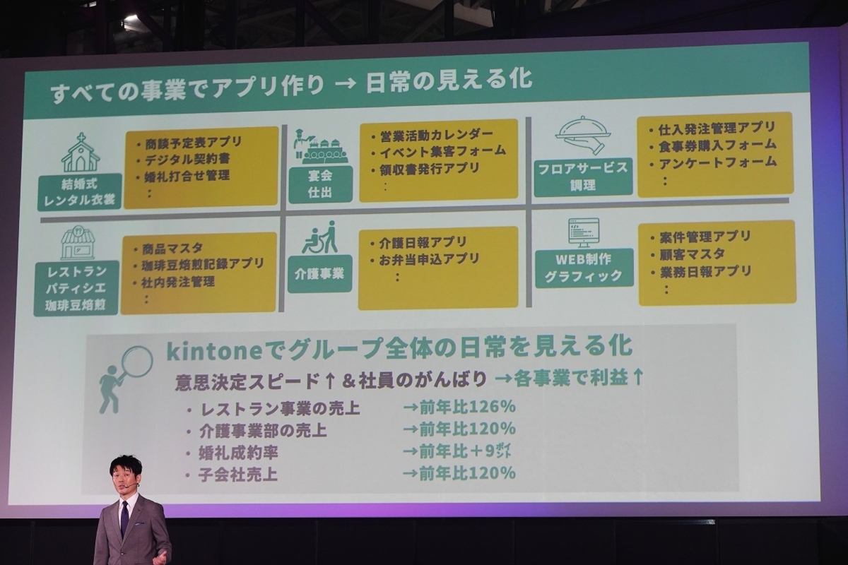 これらのアプリの効果は絶大だった。グループ全体のほぼすべての日常業務が見える化され、大野氏の意思決定は格段に早くなった。加えて、社員の頑張りも実を結び、前年度比でレストラン事業の売上は126%、介護事業部は120%増加して、婚礼成約率も9ポイント上昇するなど、各事業で利益向上を達成。この「見える化」が、反撃の狼煙になる。