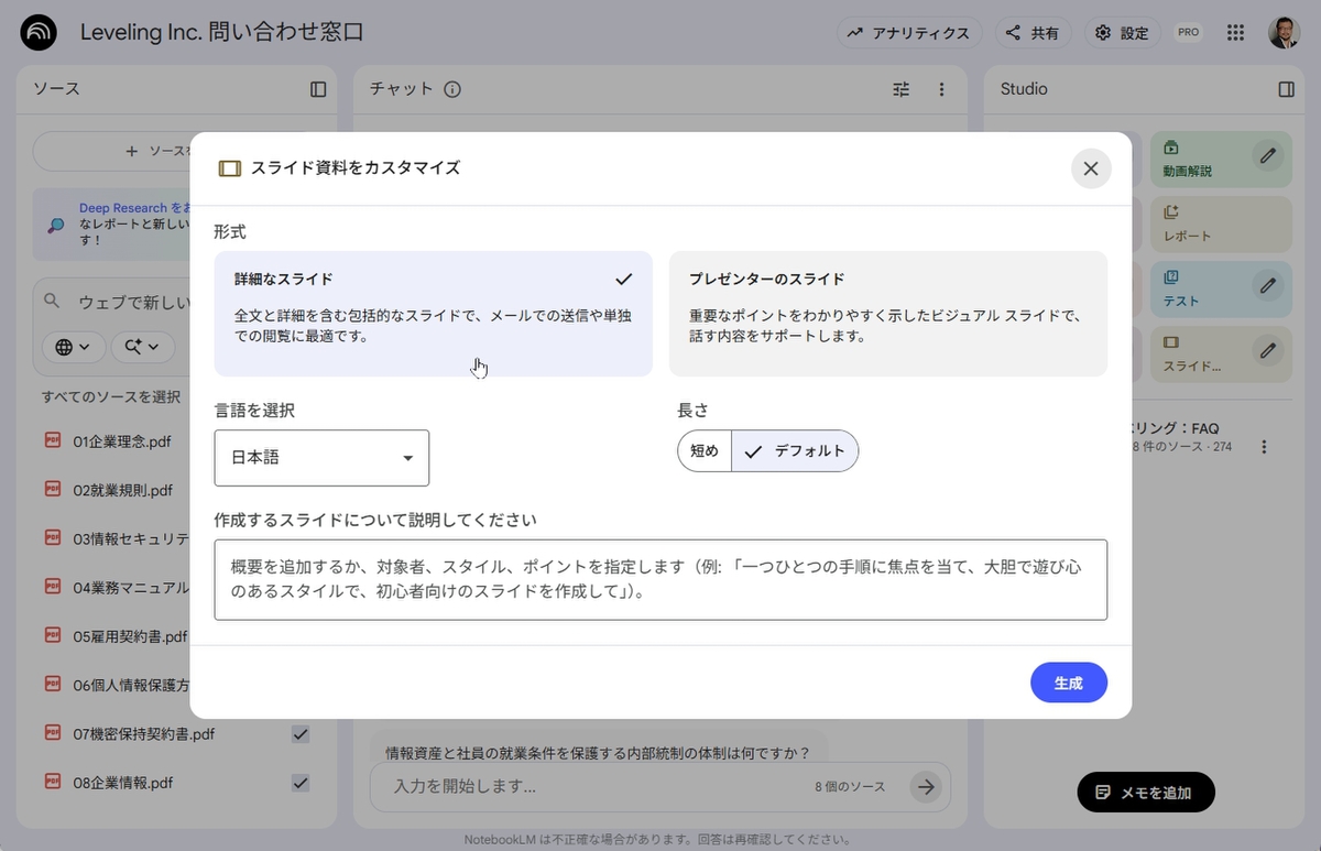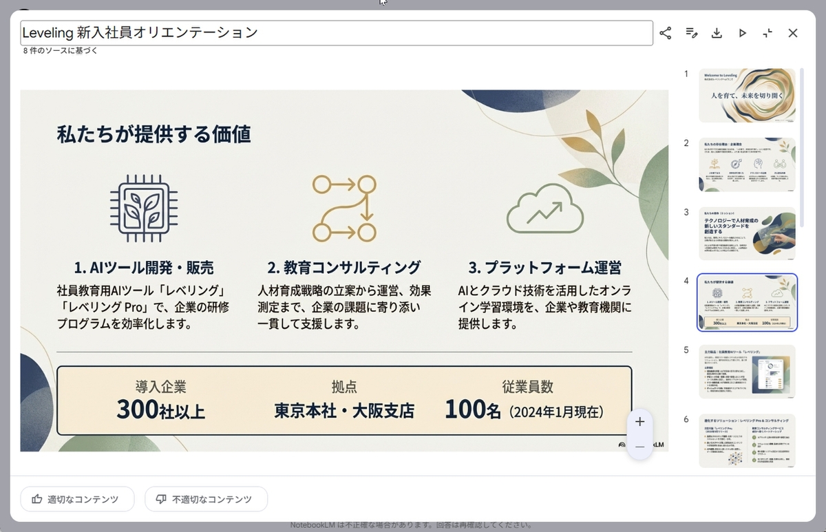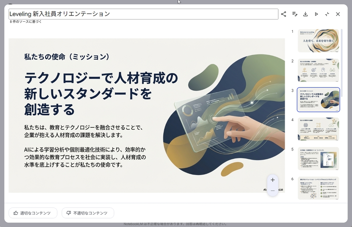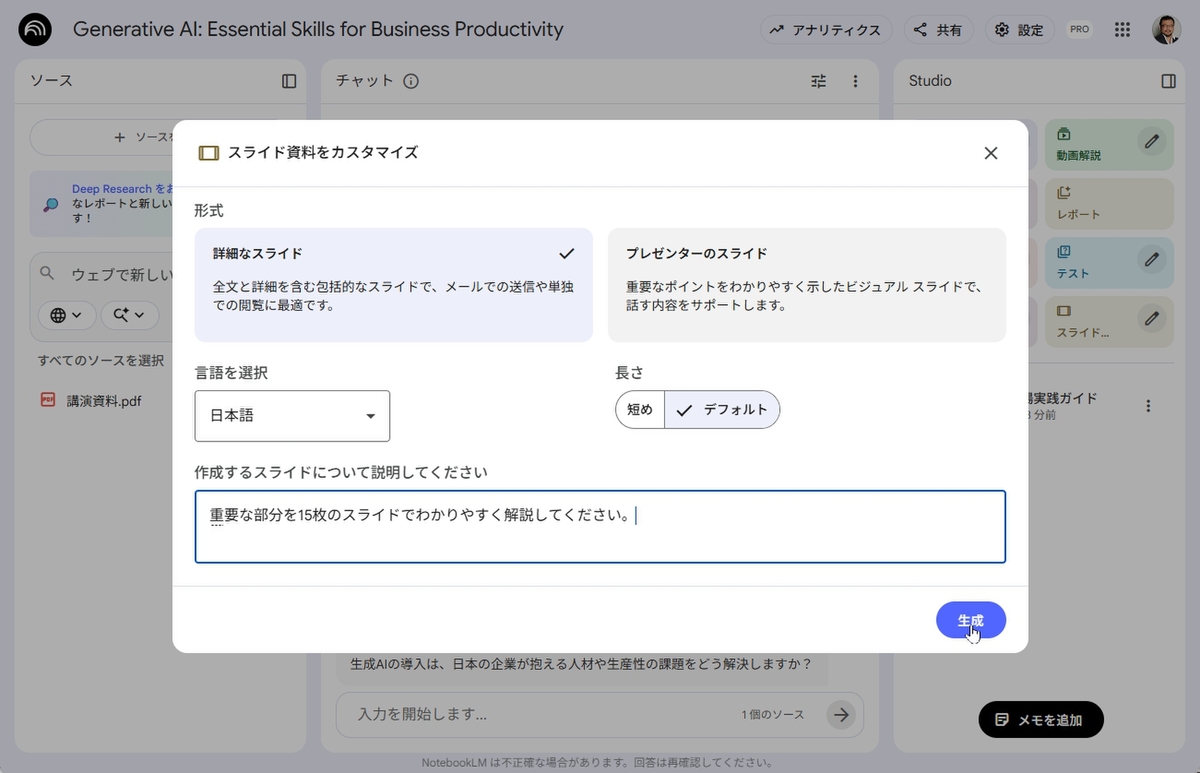 そのまま使えるスライドを作成できる「NotebookLM」のスライド機能