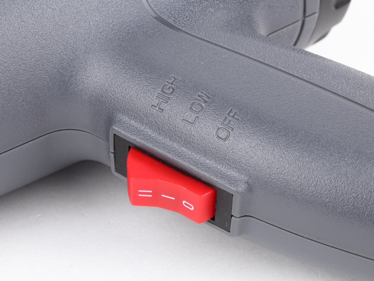 温度調整ができる範囲が風量によって変わり、弱風だと50~300度、強風では100~600度。風が強いと熱が逃げやすくなり、温度が上がりにくそうな印象になりますが、最大温度を上げるというより、より多くの熱風を送り出すということを重視している感じですね。この温度設定も熱風の温度ではなく、ヒーターの温度でしょう。