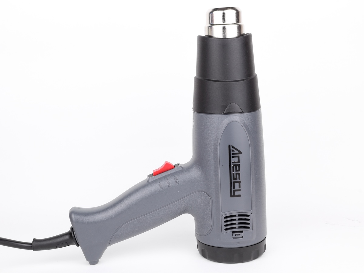 ちなみに、吹き出し口を上にした状態で自立可能。かなり安定しているので、加工したい物を両手に持って熱風を当てる場合や、ヒーターの冷却時にこの状態で置いておくと便利です。