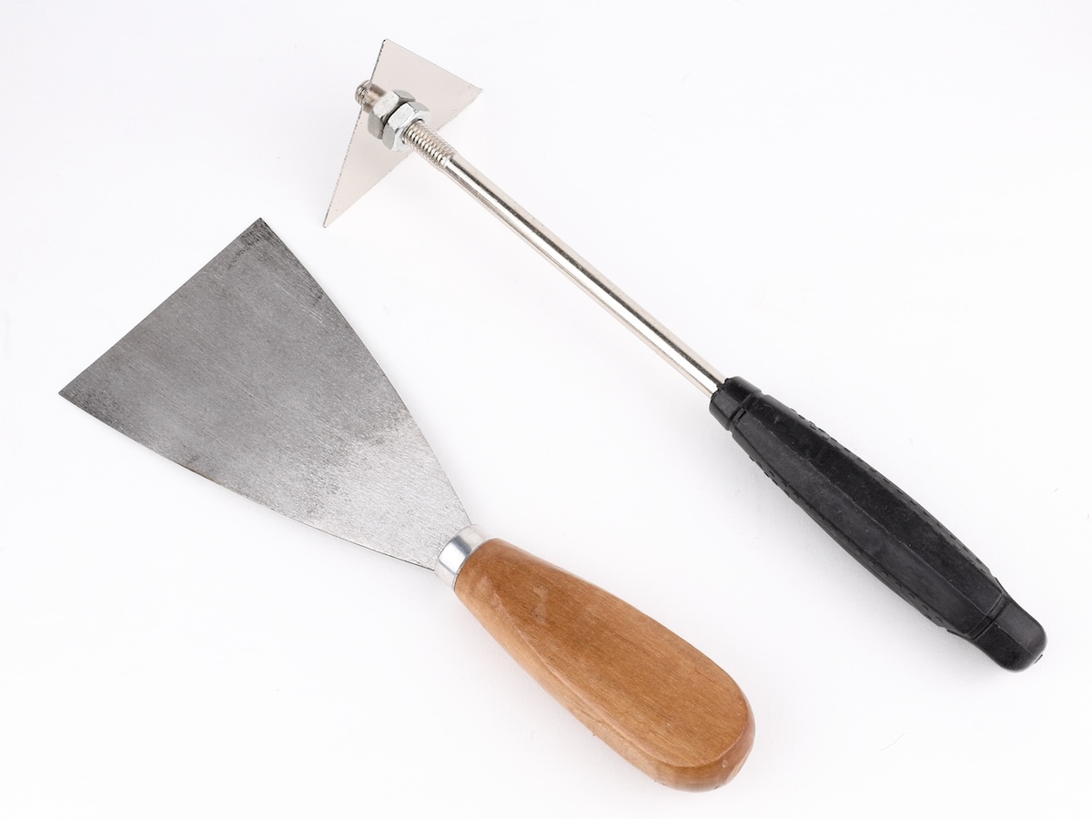 スクレーパーは、平たい場所でシールや接着剤、塗装剥がしをするのに便利な平たいタイプと、三角の薄板にハンドルが付いた2種類が付属しています。三角のタイプは、角に張り付いたシールなどをかき出す場合に活躍してくれます。