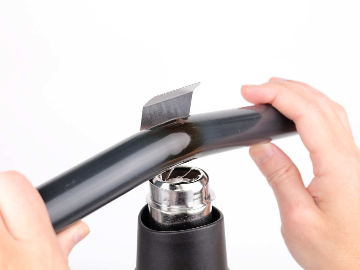 ドライヤーで一応、縮んでいたシュリンクフィルムでも、広範囲を加熱できるヒートガンなら手早く、そしてキレイに仕上がります。高温の大風量で一気に作業できるというのは、ドライヤーにない魅力といえるでしょう。
