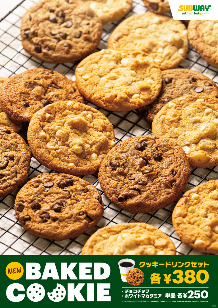 サブウェイは、12月10日から、店内で焼き上げるクッキー「チョコチップ」と「ホワイトマカダミア」の2種類を全国の店舗で発売します。