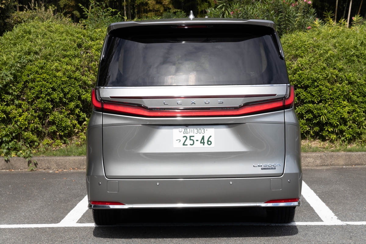 芸能人の移動車といえばアルファードやヴェルファイアがお約束。レクサスLMは、そのレクサス版で兄弟車にあたります。それゆえボディーサイズは全長5125×全幅1890×全高1955mm、ホイールベースは3000mmと大柄。でも、実際見るとそんなに大きく感じないのは、街中でアルファードやヴェルファイアをよく見かけるからでしょう。