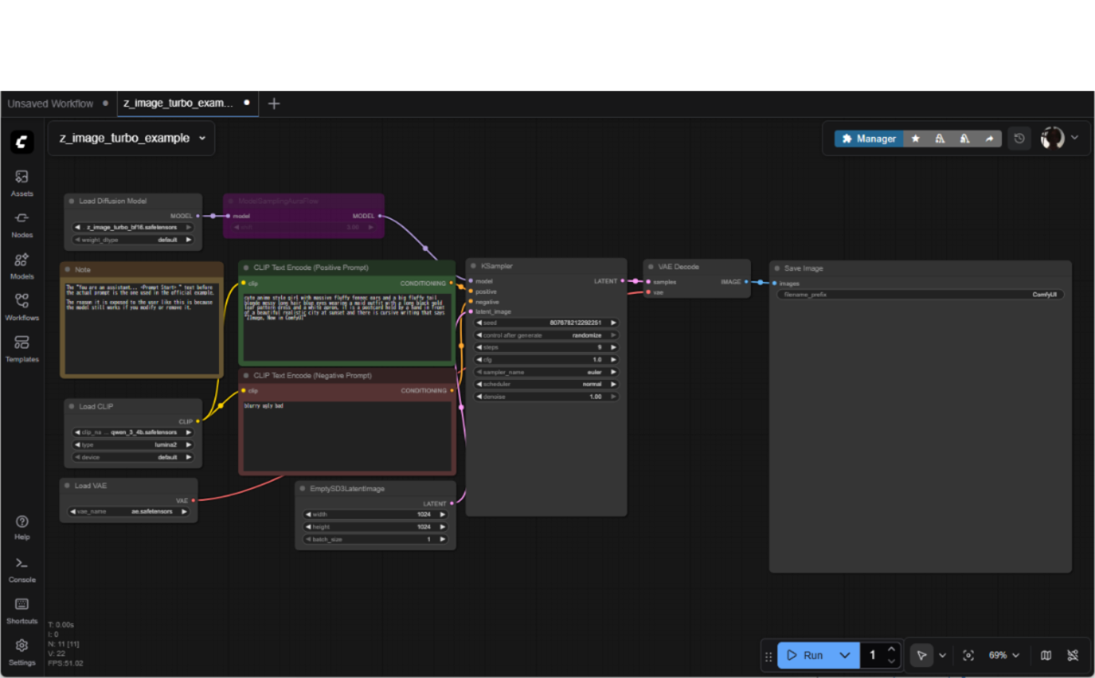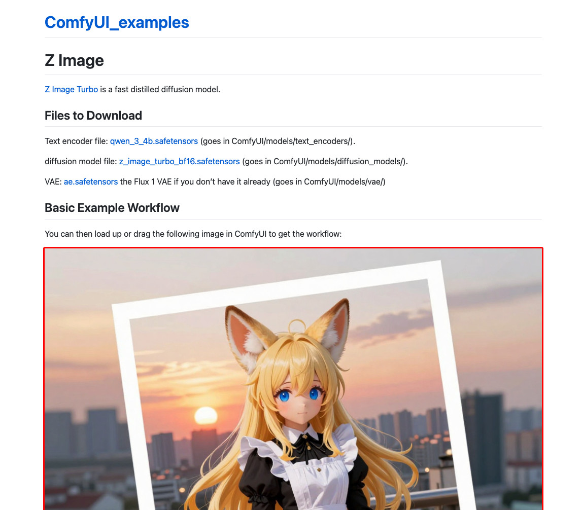 Z-Image Turboを「ComfyUI」で利用する際には、公開されている専用テンプレートの画面にアクセスし、サンプル画像をComfyUIの画面にドラッグ&ドロップするだけで開始できる。
