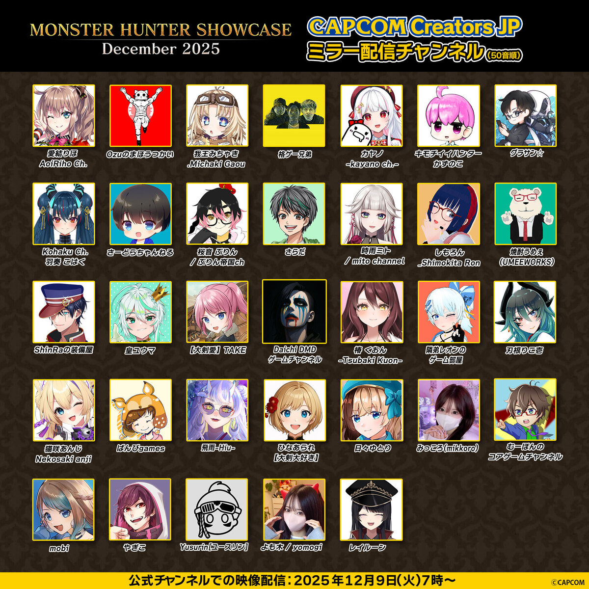 カプコンは12月5日、公式番組「モンスターハンターショーケース」を12月9日午前7時より配信すると発表した。