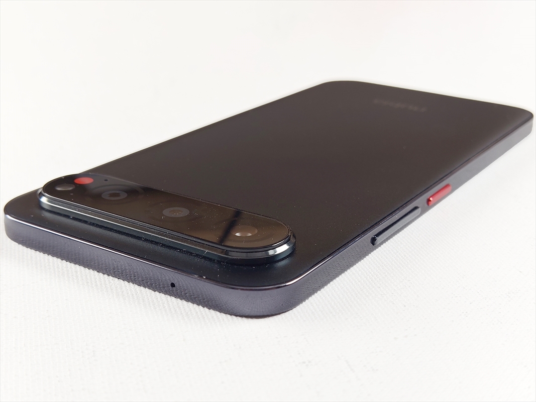 背面のカメラ部分はiPhone Airに似た横ワイドな台座にトリプルカメラを搭載。5000万画素の広角、200万画素の深度測定、性能は非公開の補助カメラを搭載する。右端のLEDライト下の赤いロゴはnubiaのカメラシステム「NEO Vision」のロゴとなっており、背面のアクセントになっている。