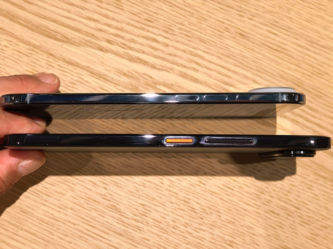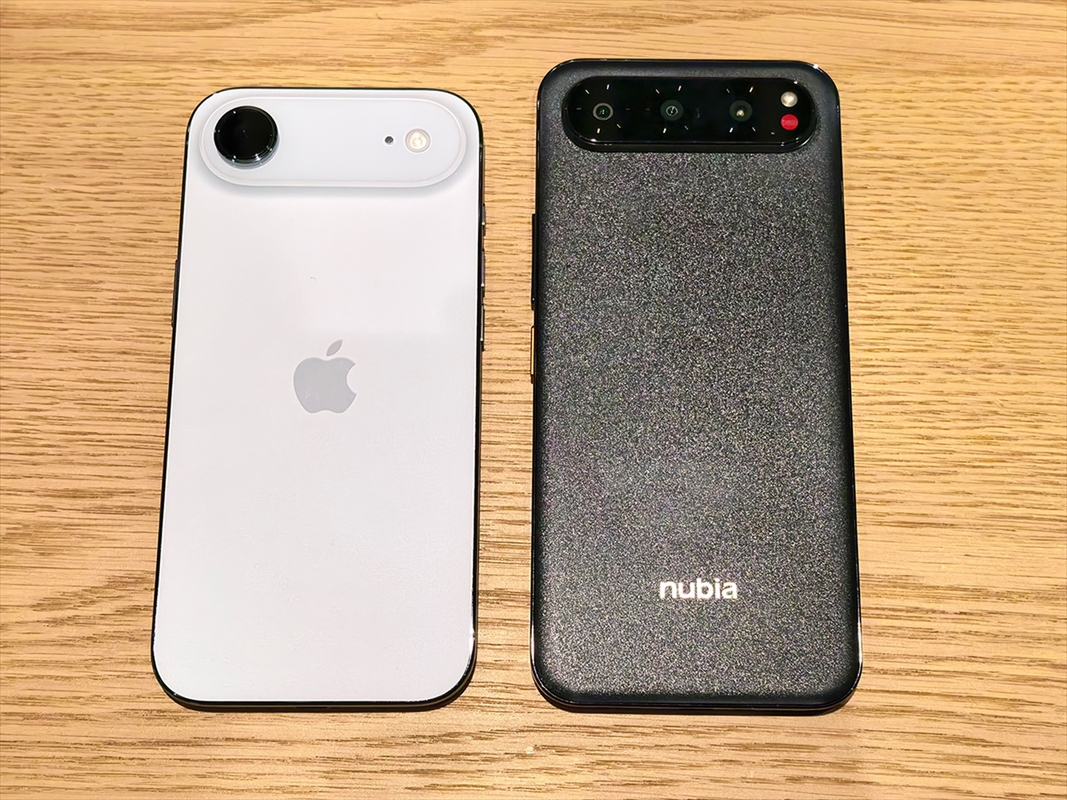 また、iPhone Airとのサイズ比較もしてみた。nubia Airが一回り大きいことがわかるだろう。このようにサイズが大きいため、重量は7gほど重いものの、手に持った感触はほぼ変わらなかった。