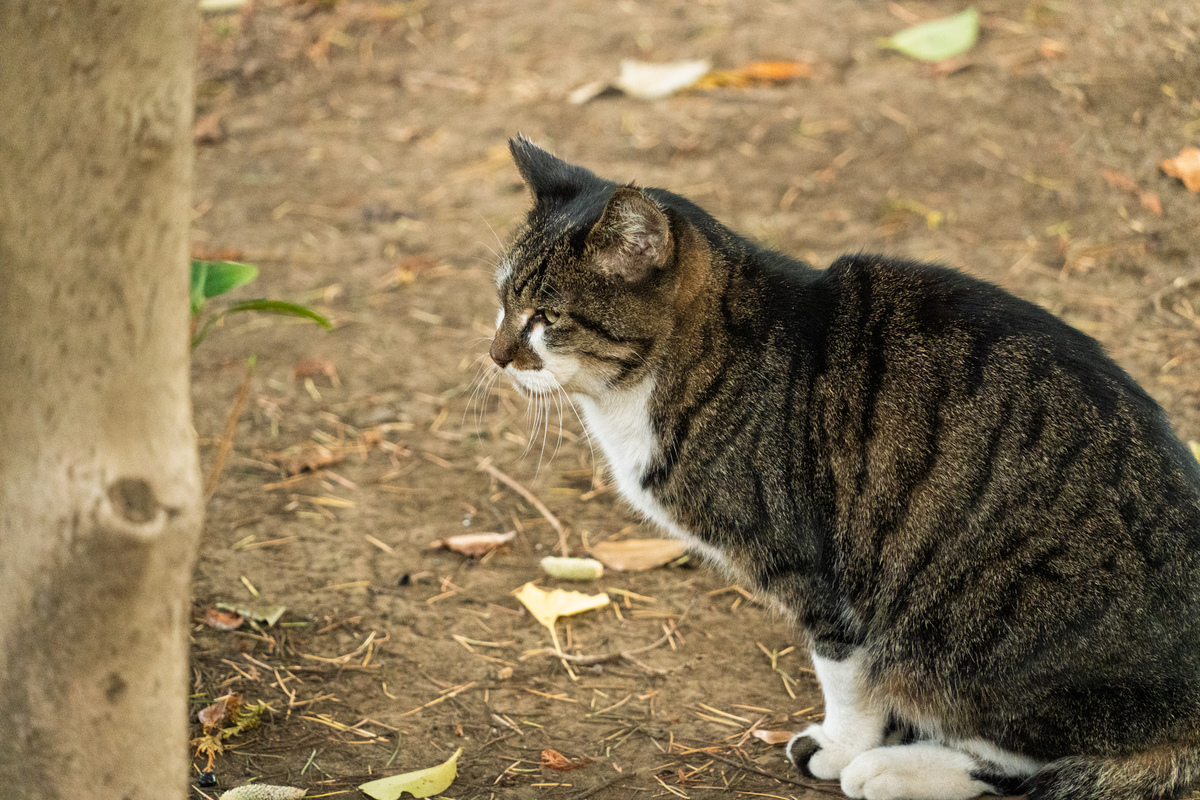 高倍率ズームレンズ持ってると、ついついアップで撮ろうと望遠端までひっぱっちゃいがちだけど、時にはあえて寄らないことも大事である。屋外で出会う猫となると、どうしても望遠がメインになっちゃうのだけどね。