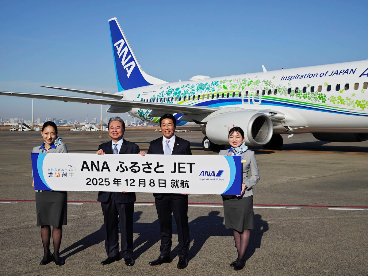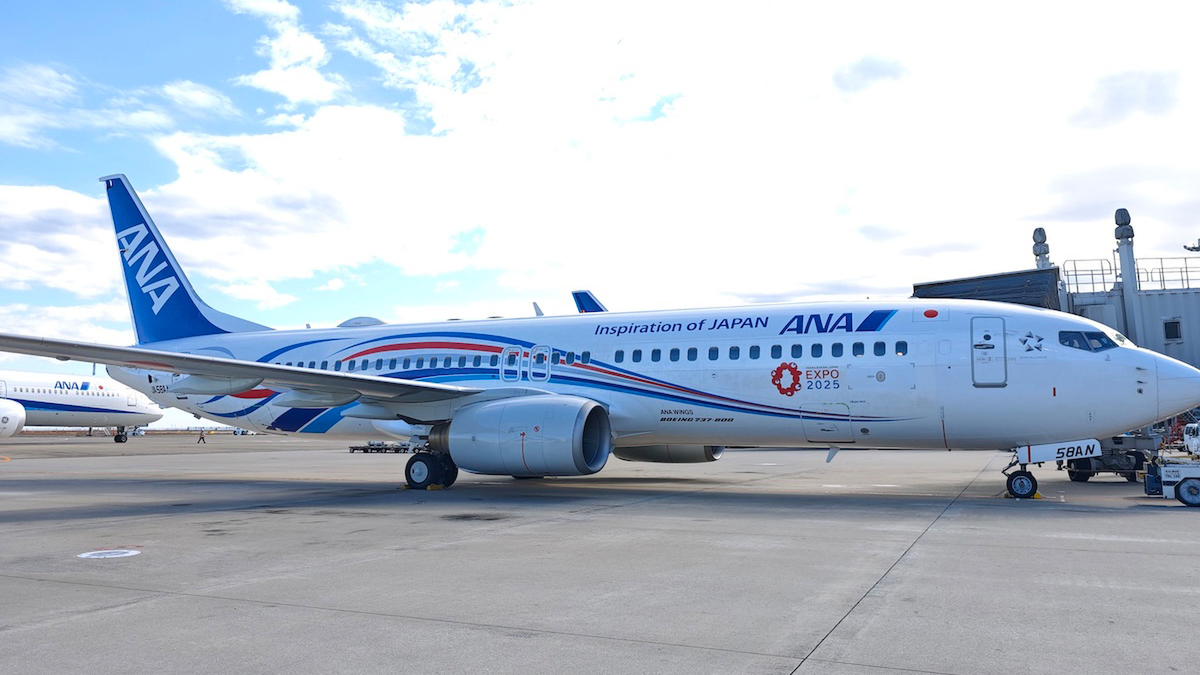 今回就航した「ANA ふるさとJET」の使用機材は、ボーイング737-800型機(機体記号:JA58AN)。この機体は、2025年10月まで開催されていた大阪・関西万博の特別塗装機「EXPO2025 ANA JET」として運航されていたもの。