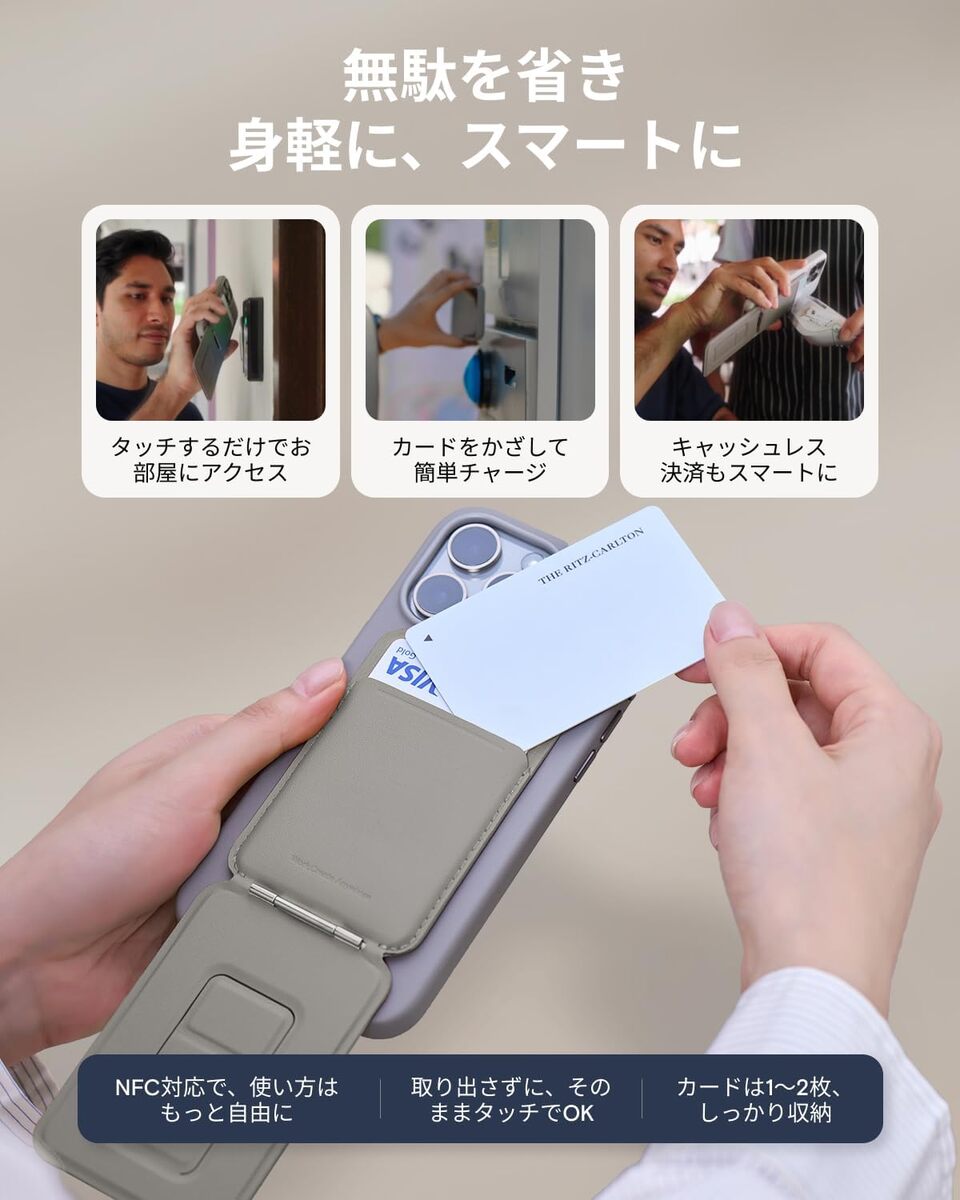 さらに、用途に応じて形を変えてくれるので、「今日はスタンドが中心」「今日は撮影メイン」「今日はカードだけあればいい」というように、シーンに合わせて“スマホの機能”を追加する感覚。
