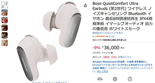 BOSE史上最高のノイズキャンセリングを誇るワイヤレスイヤホン「QuietComfort Ultra Earbuds(第2世代)」が、Amazonセールに登場しました。過去価格39,600円のところ、9%オフの36,000円で購入できます。