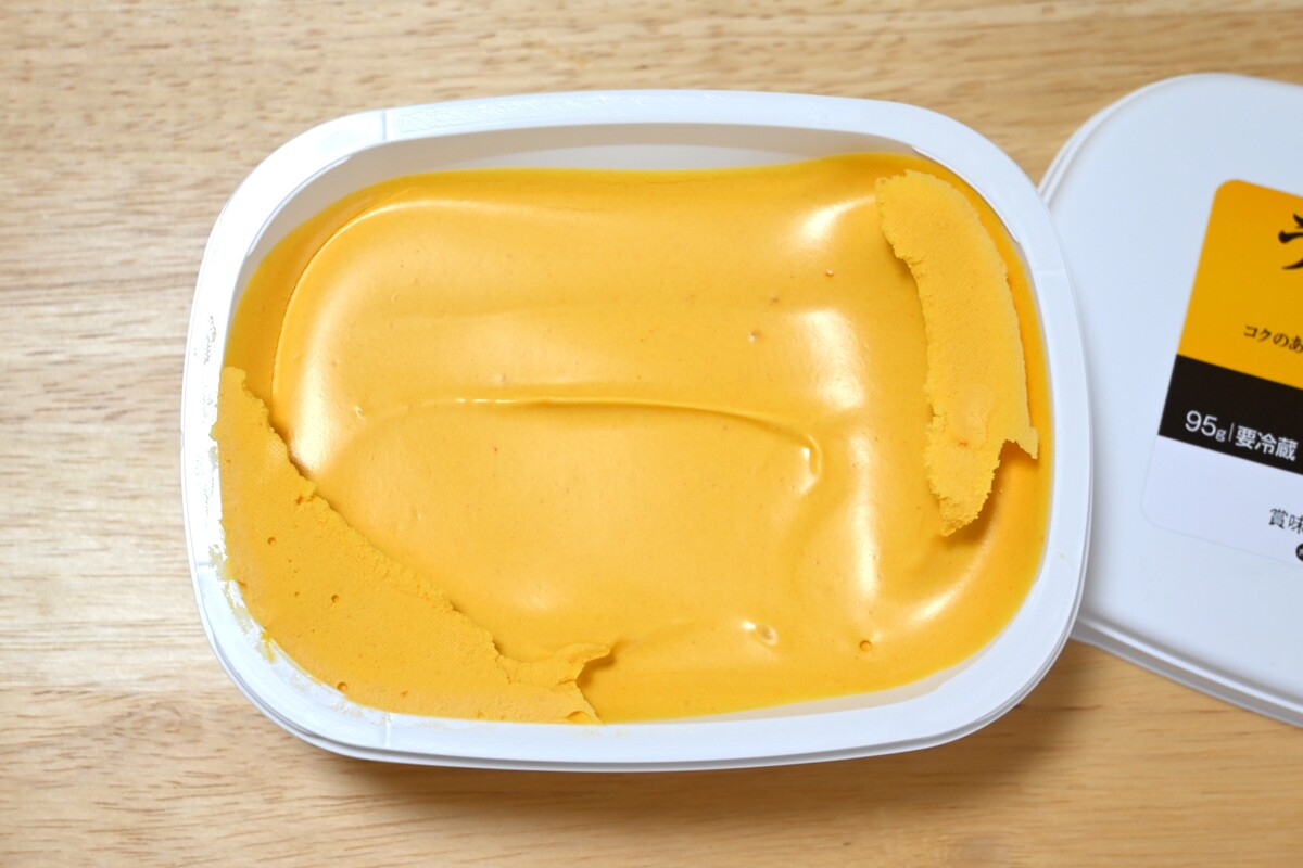 ふたを開けると、うにの濃厚さを思わせるオレンジ色のバターが目に飛びこんできます。テンションがあがって、心の中で「うに色? うに!」と掛け合いが始まってしまいます。