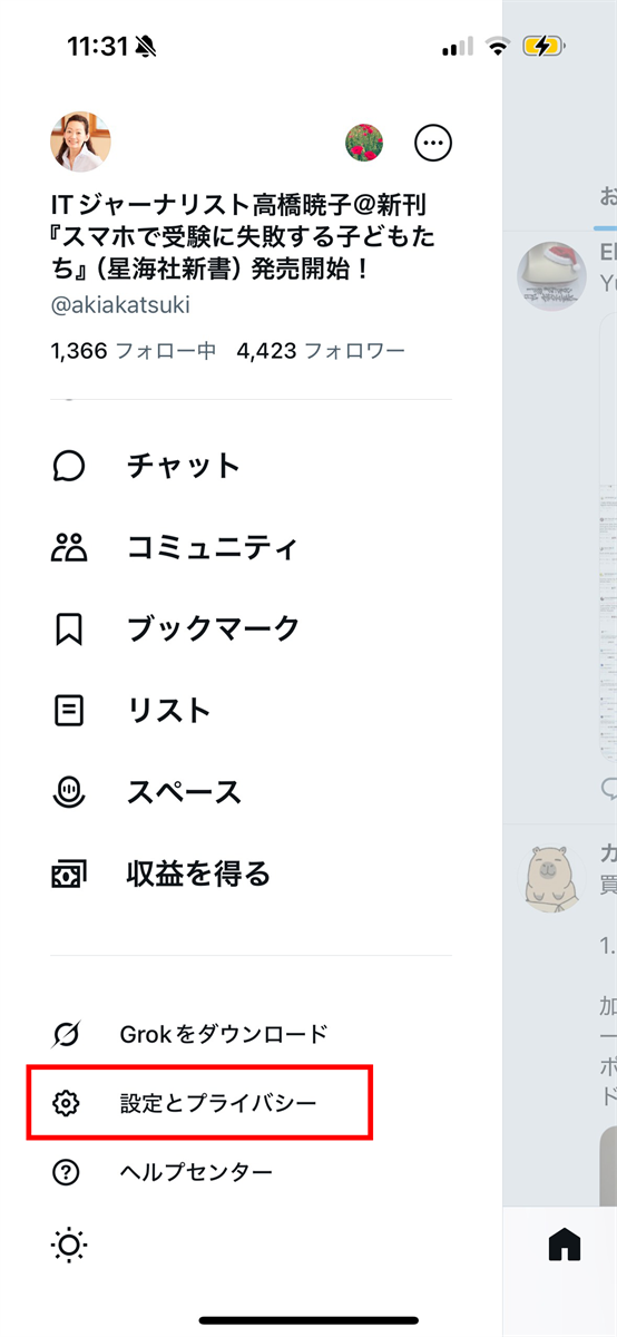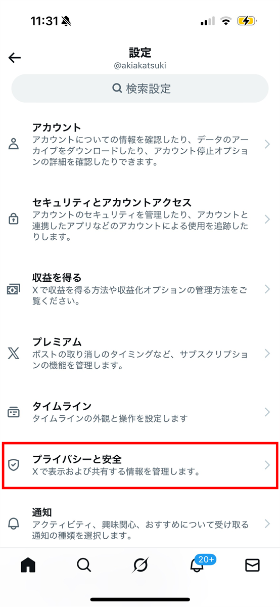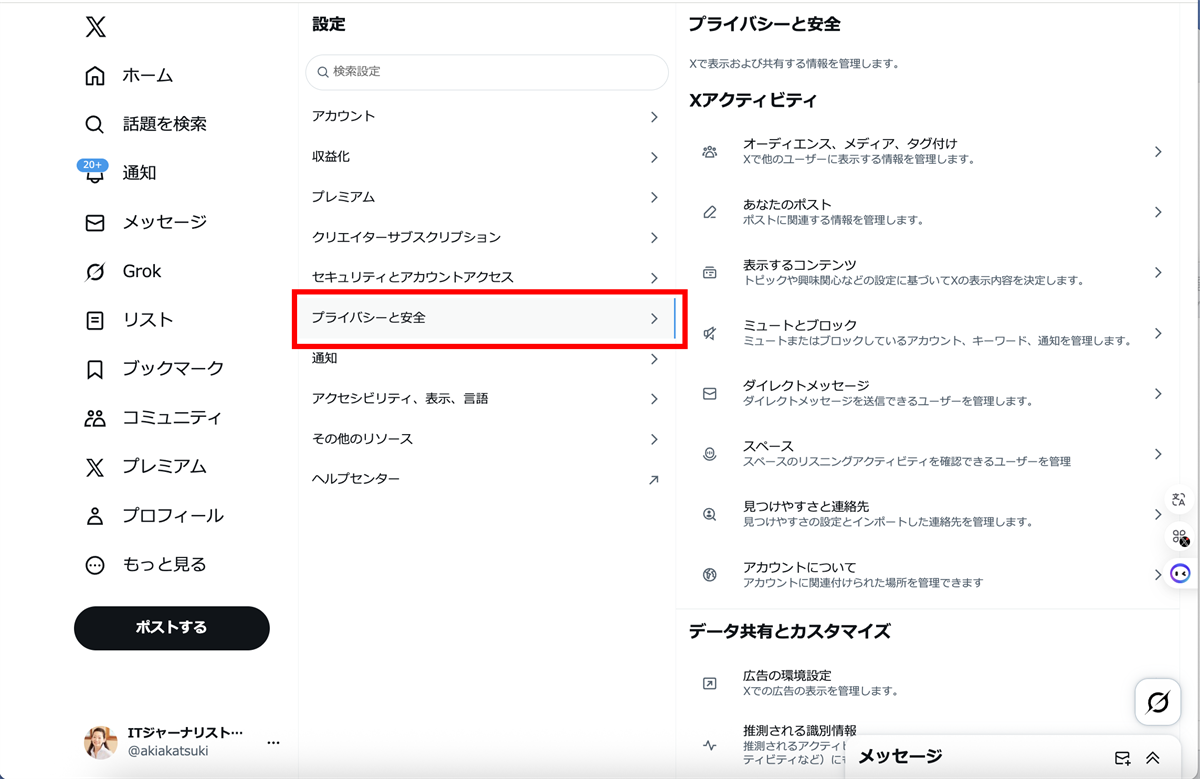 センシティブ投稿の設定手順だが、iPhoneの場合はXアプリからは設定できず、ブラウザから操作することになる。