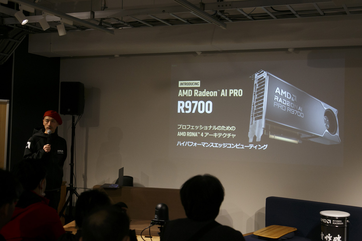佐藤氏が最後に紹介したのは、VRAM32GB搭載のプロフェッショナル向けGPU「Radeon AI PRO R9700」。最近は言語モデルの小型化に加え、コスト削減やデータ流出の観点からローカル環境でAIを運用するニーズが高まっており、そんな条件に合致した「Radeon AI PRO R9700」は、AI業界から非常に注目されているとのこと。
