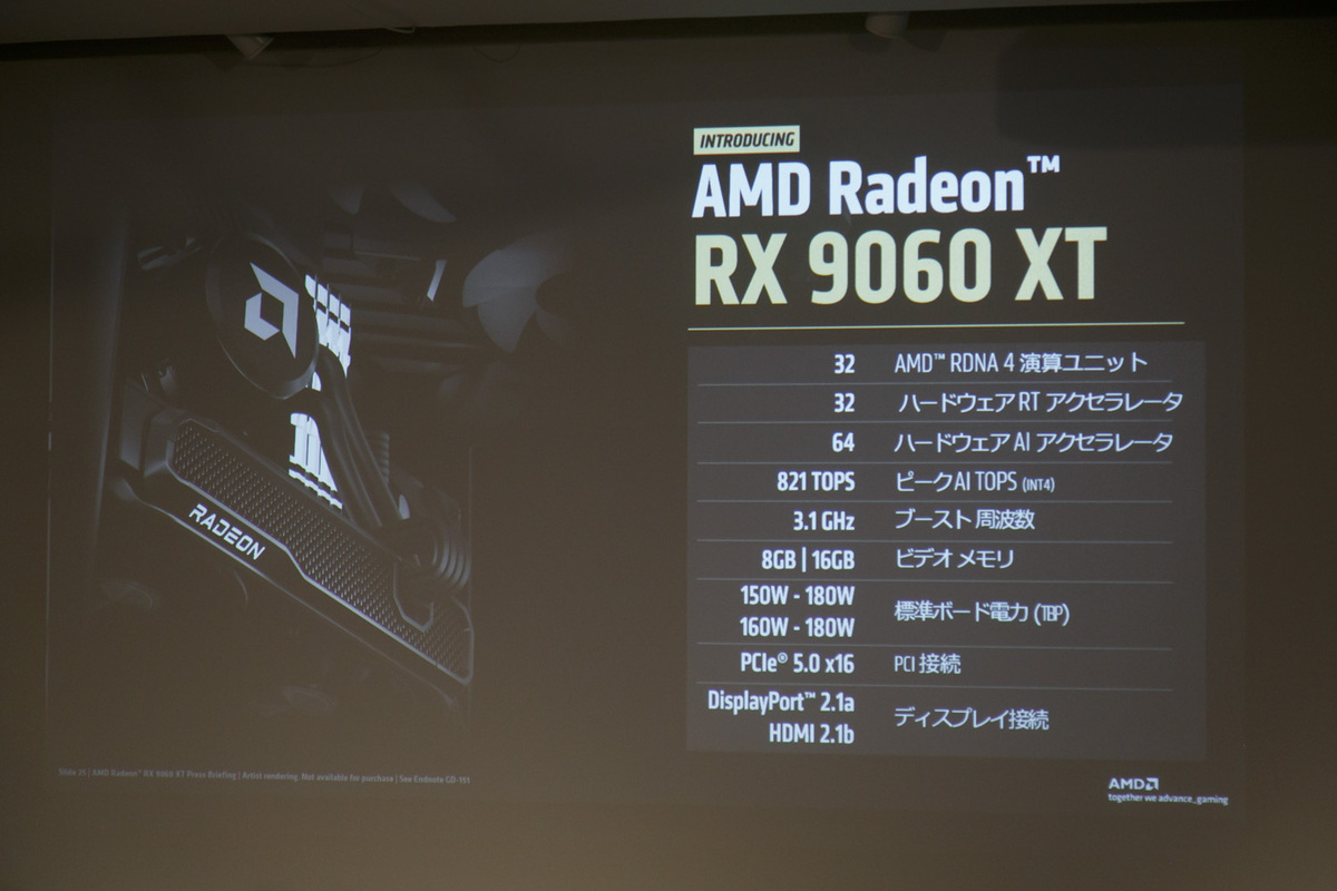 続いて話題はGPUへ。佐藤氏は「CPU以上にインパクトがあったのがRadeon RX 9000シリーズ」と語る。みなさんのおかげで本当に売れました。Radeon復活! と言える製品になりました」と、会場に集まったAMDファンに感謝の言葉を述べた。