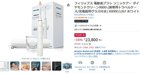 【Amazonタイムセール】フィリップス 電動歯ブラシ「ソニッケアー ダイヤモンドクリーン9000(HX9911/67)」登場!
