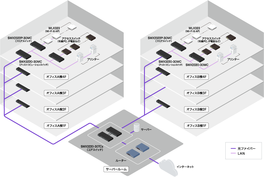 インテリジェントL2スイッチ スタックやスパニングツリー、トリプル認証などに対応。後述するLANマップの親機であるL2MSマネージャー機能を利用できる。