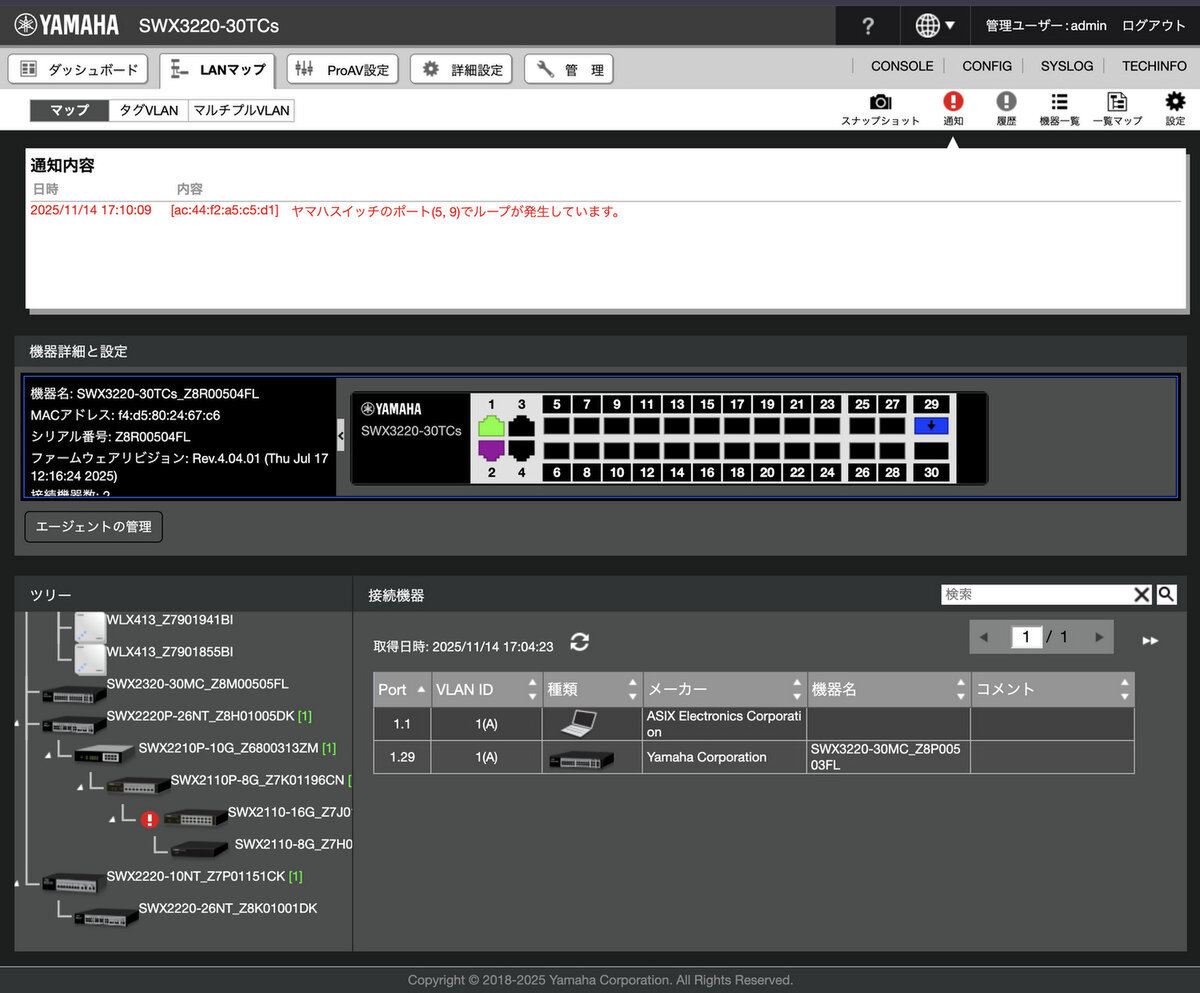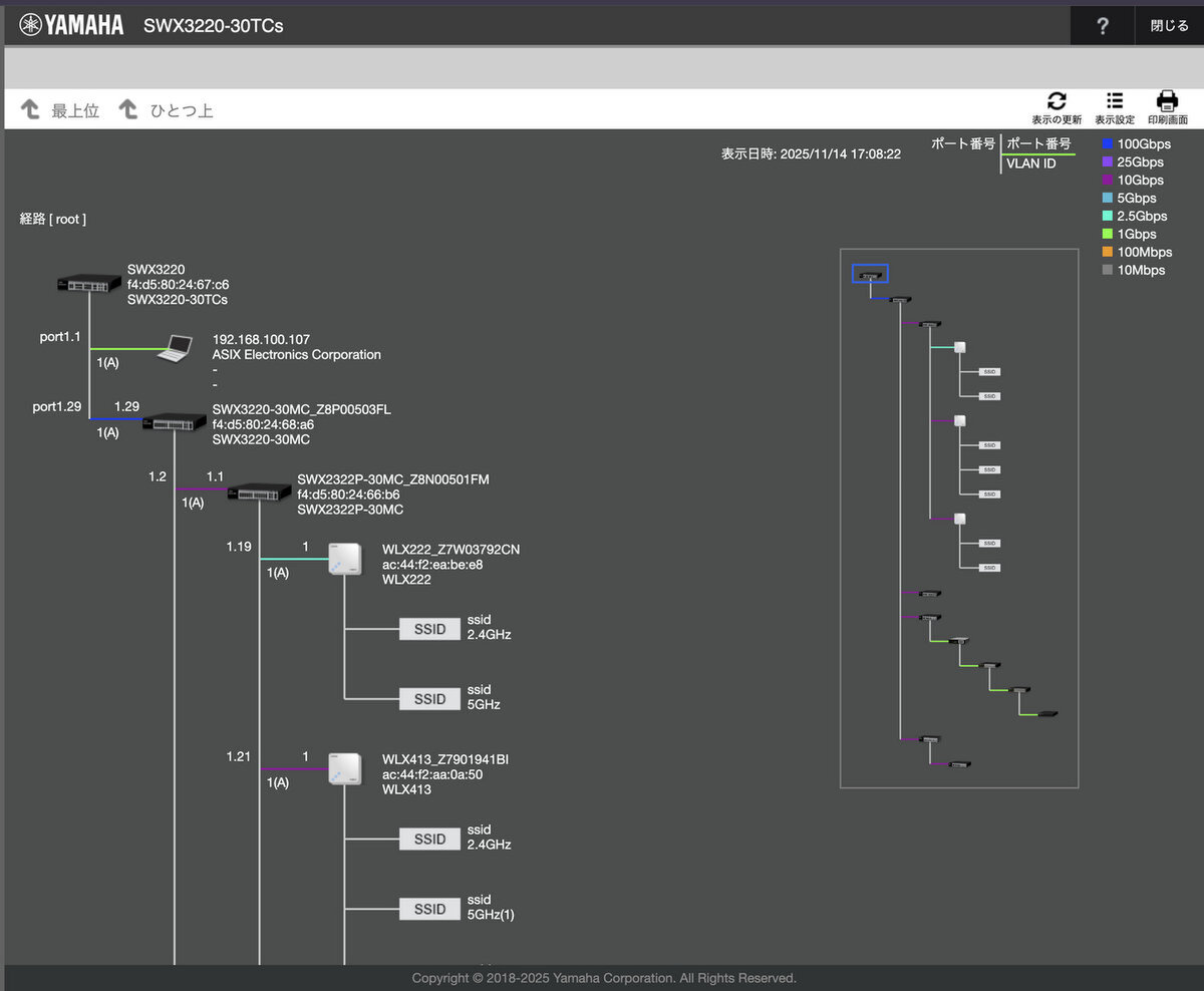 Webブラウザで管理画面にアクセスすれば、複雑な設定なしに、今のネットワークの状態が端末レベルまで一目でわかる。ヤマハによると「接続速度も見え、配線間違いが判明して助かった」という声も多数あるという。これぞ可視化の威力。スイッチ市場参入が後発というヤマハだからこそ実現したプレミアムだ。