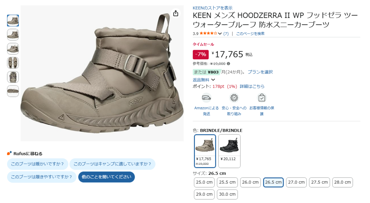 KEENの、洗練された理想的なパフブーツ「防水スニーカーブーツ」が7%オフの17,765円で、Amazonタイムセールに登場!
