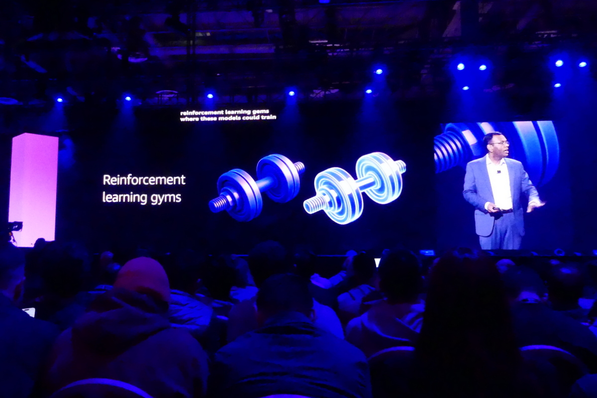 その後、シバスブラマイアン氏の講演は、エージェントの定義や必要な要素、PoCから脱出するためのモデルの効率化、複雑性やコストの課題などのトピックについて掘り下げる。難解になりがちなAIの説明を、わかりやすいたとえ話で表現してくれるシバスブラマニアン氏の話はいつも学びにつながる。エージェントに必要なコンテキストを補う「Amazon AgentCore Memory epsodic functionality」や強化学習をトレーニングジムに例えた「Amazon Nova Act」の説明は特に秀逸だった。