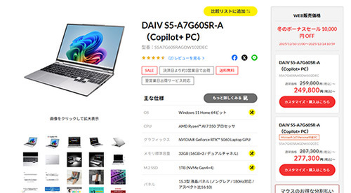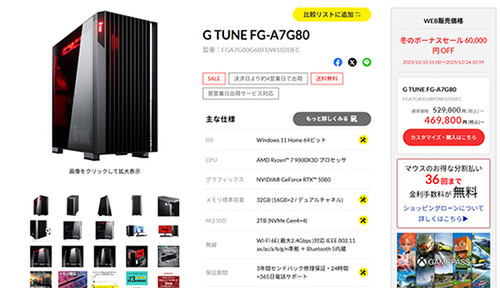 最新AI PCからRTX 5080搭載ゲーミングPCまで特別価格! マウスコンピューター「冬のボーナスセール」開催中!