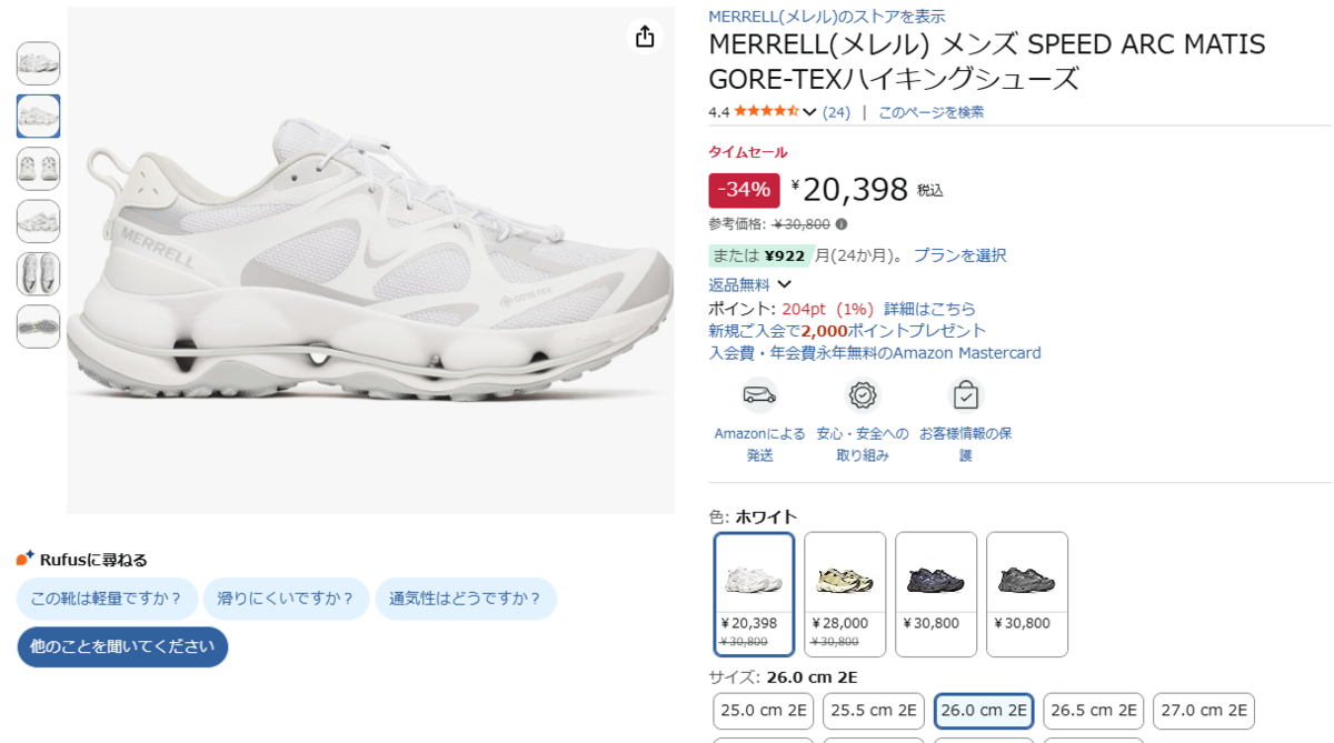 次世代のハイカーに向けた、メレルの革新的な完全防水ハイキングシューズSPEED ARC MATIS GORE-TEXが34%オフの20,398円で、Amazonのタイムセールに登場!