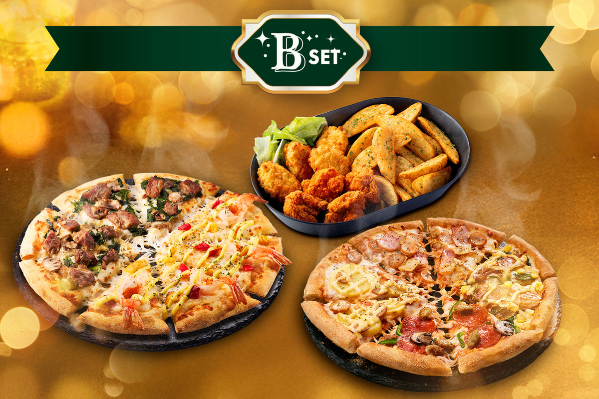 冬の贅沢セットは、ピザやサイドメニューをあらかじめ組み合わせたA、B、Cの3種類です。クリスマスや年末年始に向けた食卓の準備を簡単にできるように構成されており、用途に応じて選びやすい内容となっています。