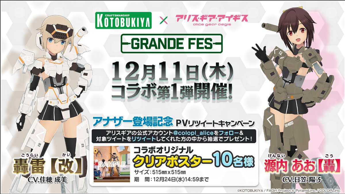 「グランデフェス」の第1弾となる『フレームアームズ・ガール』とのコラボ開催を記念して、抽選でコラボ特製タペストリーが当たるX(Twitter)キャンペーンを実施中。アリスギア公式X(Twitter)をフォローして参加しよう。開催期間は、2025年12月18日23時59分(予定)まで。