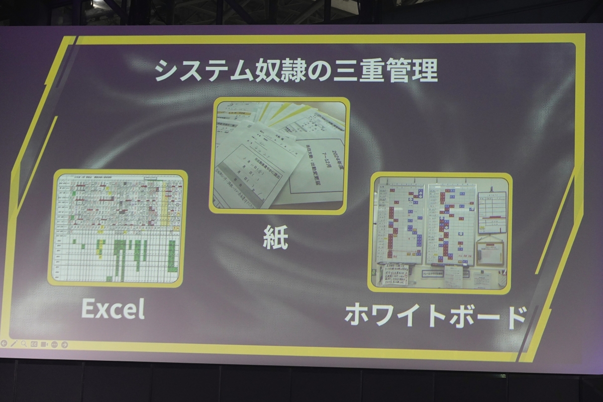 結果、現場は大混乱に陥ってしまう。特に「完全希望休制度」がアナログ管理の限界を露呈させた。ドライバーから毎月、紙で提出される勤務希望を事務スタッフが手作業で転記し、ホワイトボードに張り出す。人の手が何度も介在するため、ホワイトボードへの張り忘れや紙の出し忘れ、転記漏れといったヒューマンエラーが続出した。「結果、私は仕事を作ったのではなく、無駄な作業を生んでしまったのです」と漆川氏。
