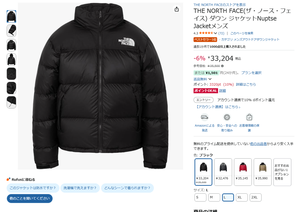 ザ・ノース・フェイスのNuptse Jacketが6%オフ!