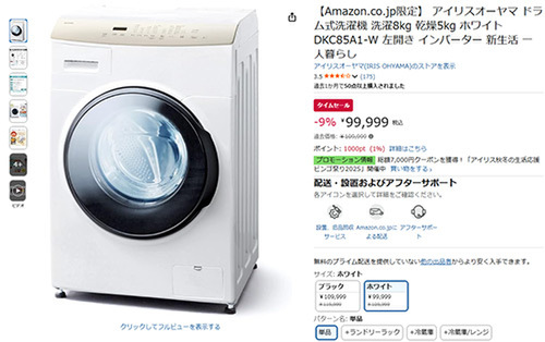 【Amazonタイムセール】アイリスオーヤマ ドラム式洗濯乾燥機「DKC85A1-W」登場!