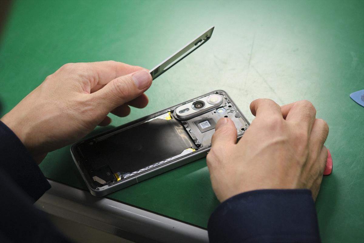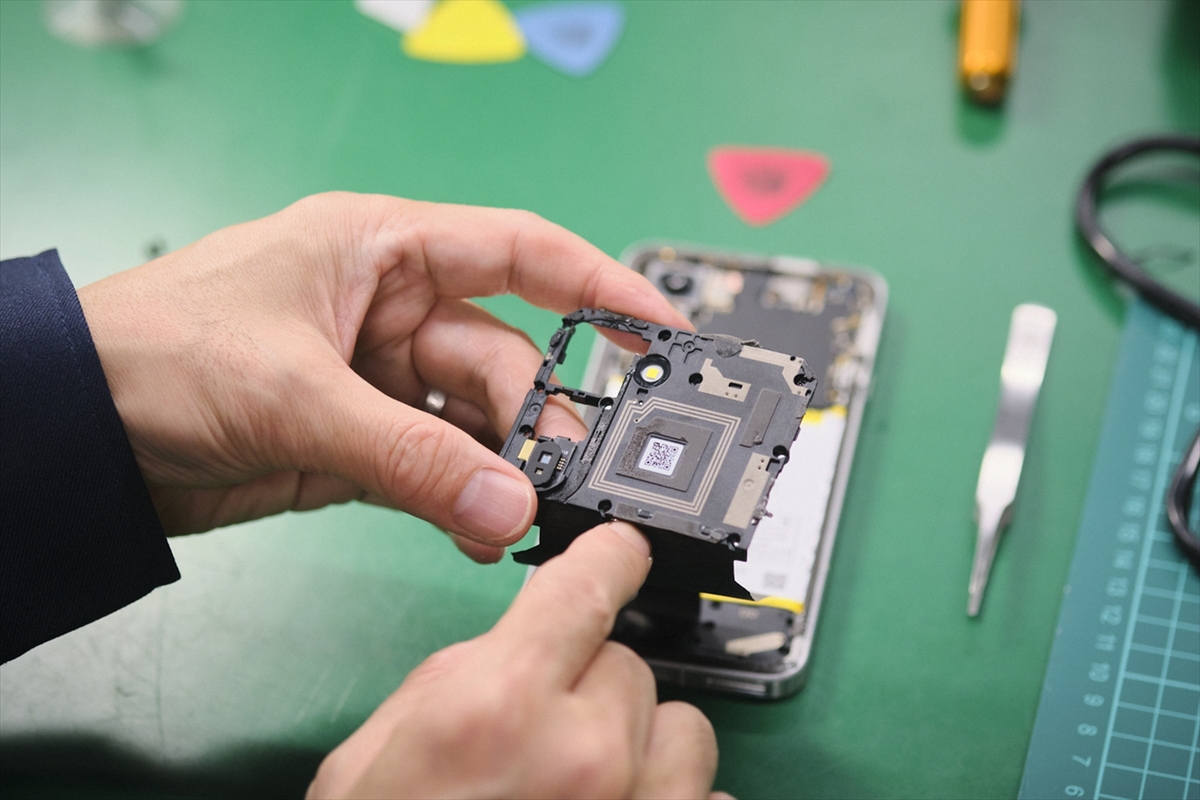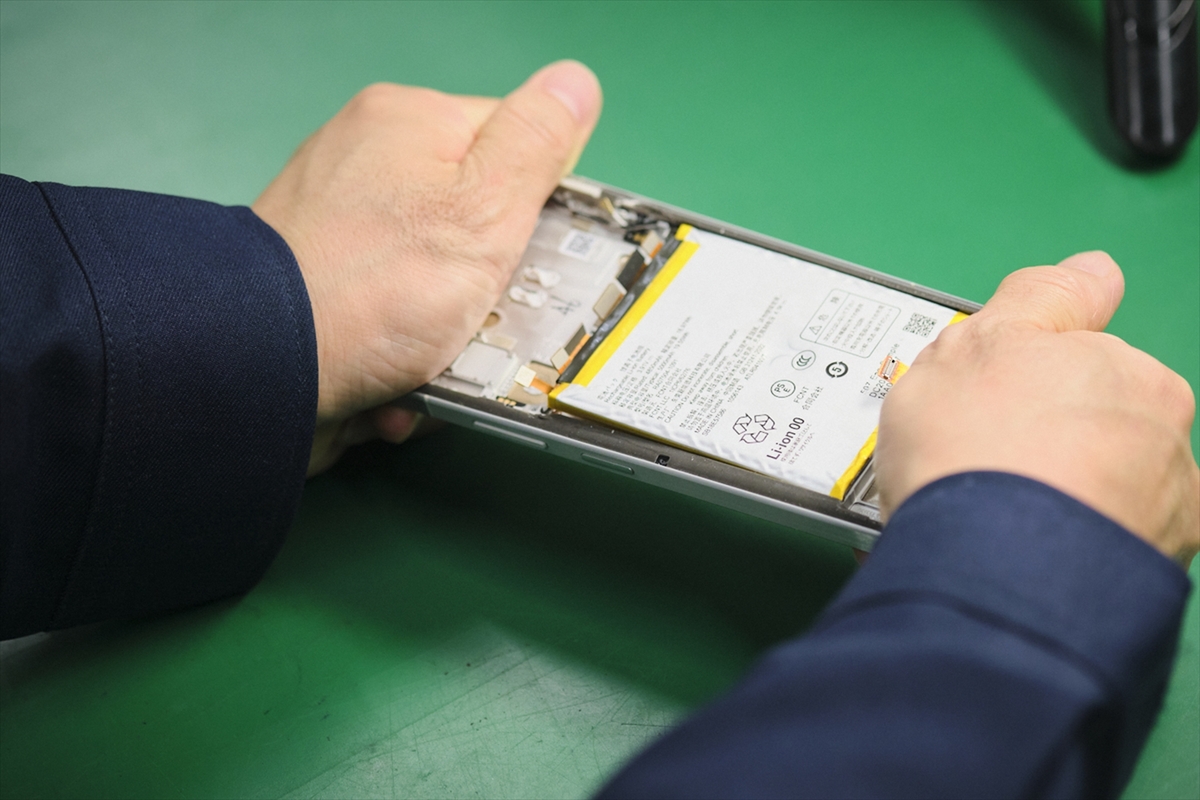 ただし、すべての箇所で同じ粘着剤を使っているわけではありません。たとえば、バッテリーを固定する粘着剤は、修理やリサイクルの際、負荷をかけて破裂させる危険を避けるために、冷やすことで粘着力が完全に低下し、簡単に剥がせる素材が選ばれています。