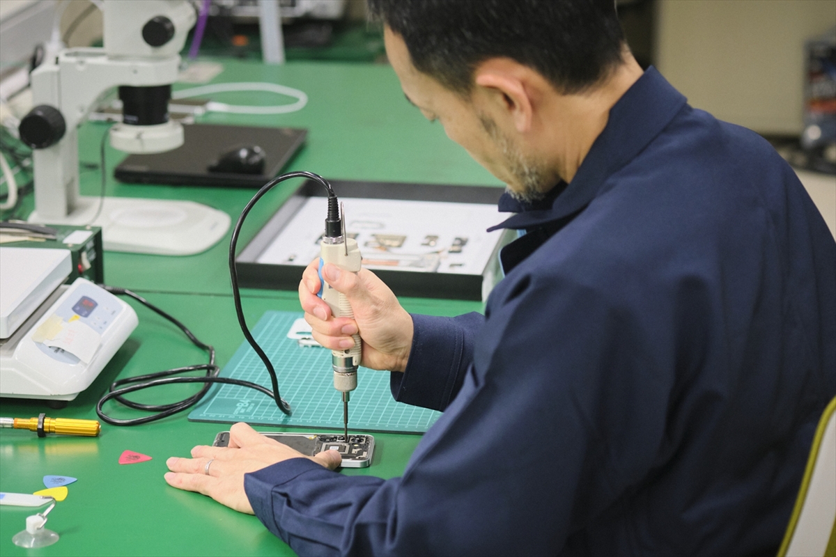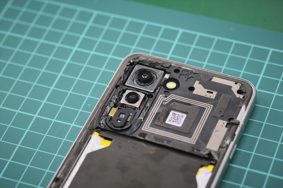 内部で使用されているネジは部品を固定するだけでなく、落下時の基板の歪みを制御するという重要な役割を持っています。基板の歪みが大きいと、その上に実装されている細かな部品が剥がれたり壊れたりして機能障害につながるためです。ネジの位置や本数は、解析シミュレーションを通じて、落下衝撃時に基板が最適に歪むように配置されています。