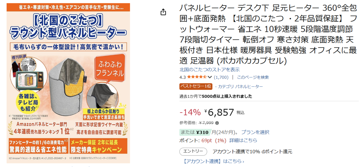 「北国のこたつ」のデスク下ヒーターが6,857 円に