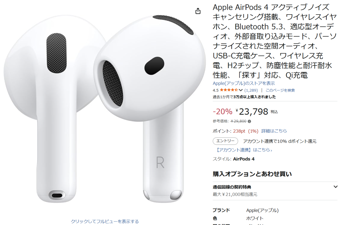 ぜひ、この機会にブラックフライデーよりお得な23,798円でAirPods 4を手に入れ、快適なオーディオ体験を始めてください。