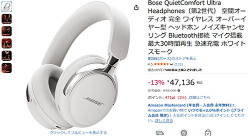 ノイキャン最強&新次元の臨場感! Bose QuietComfort Ultra Headphonesが10%オフ