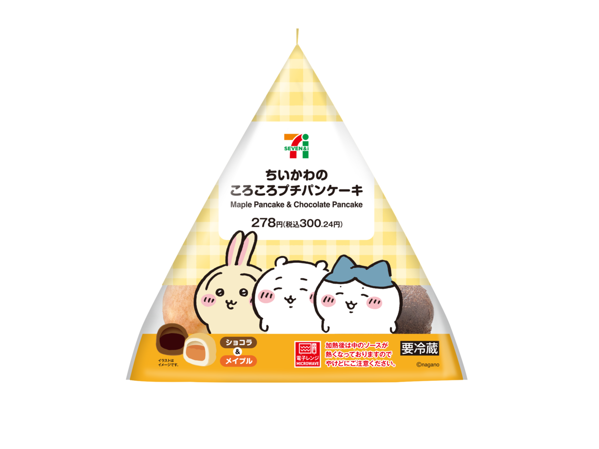 ちいかわとうさぎが食べていた巨大なホットケーキをイメージし、食べやすいサイズにした商品。ショコラとメイプルの2つの味が楽しめる甘みの詰まったパンケーキ。