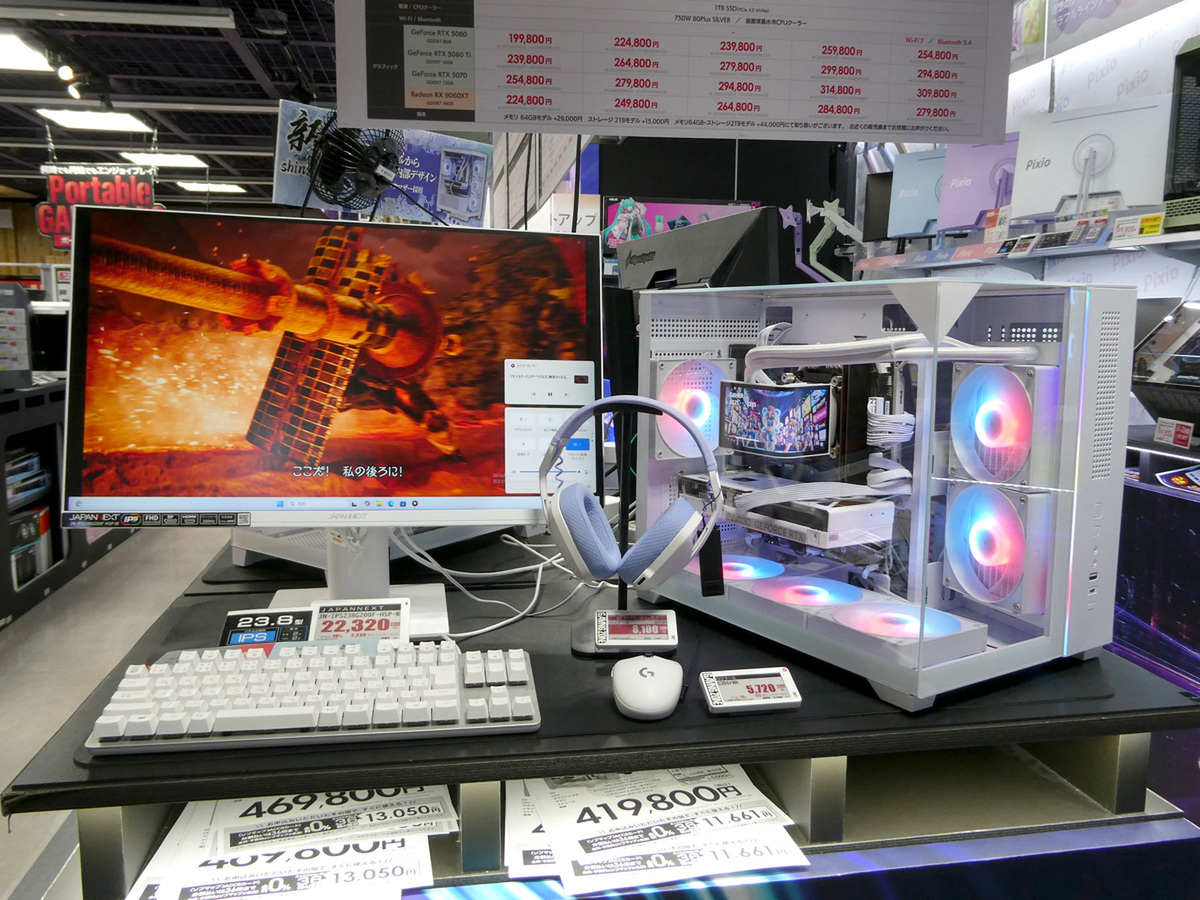 12月13日よりソフマップ対象店舗とソフマップ・ドットコムで販売開始されたアイティーシー製のゲーミングデスクトップPC「STORM SGシリーズ」。ソフマップ AKIBA パソコン・デジタル館では5階ゲーミングパソコンフロアに展示、販売されている。