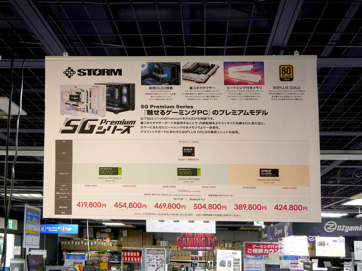 ちなみに、CPUに「Ryzen 7 9800X3D」を搭載する、上位機種のSGプレミアムシリーズでは、GPUに「GeForce RTX 5070Ti」「GeForce RTX 5080」「Radeon RX 9070XT」が選べ、メモリが32GB DDRSであれば38万9800円~46万9800円。メモリ64GB DDRSに増設しても42万4800円~50万4800円となっている。SGシリーズ以上のスペックを求めるヘビーユーザーであれば選択肢の一つとして検討していいだろう。
