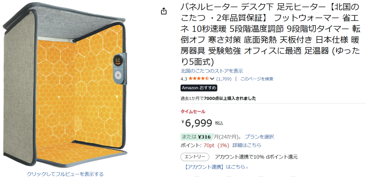 北国のこたつ「デスク下 足元ヒーター」が6,999円