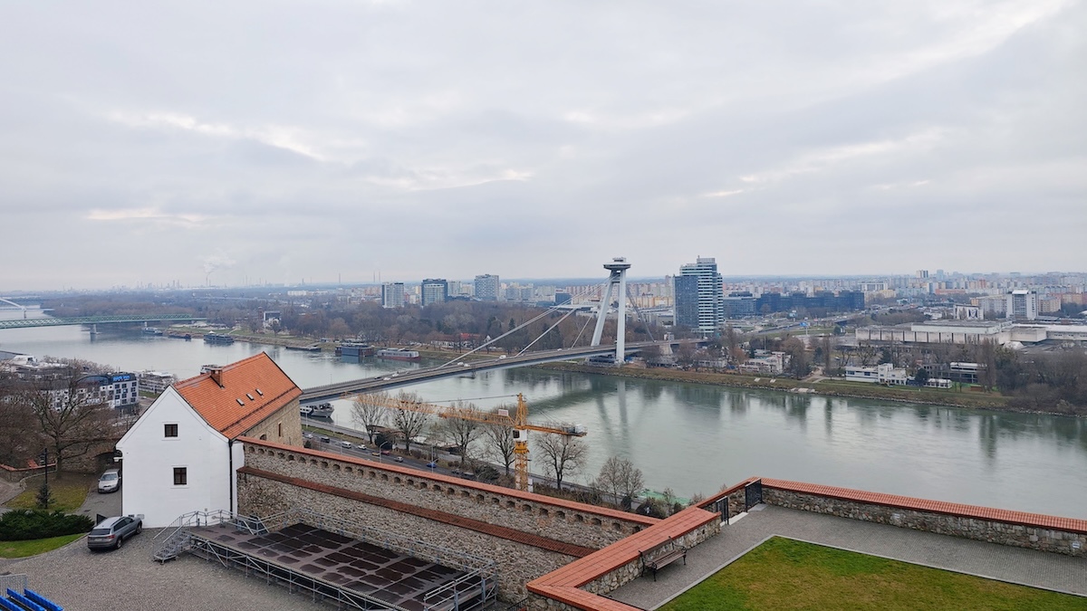 ・展望エリア: ドナウ川、UFOの塔(橋)、そして天気が良ければオーストリア国境まで見渡せる絶景スポットです。
