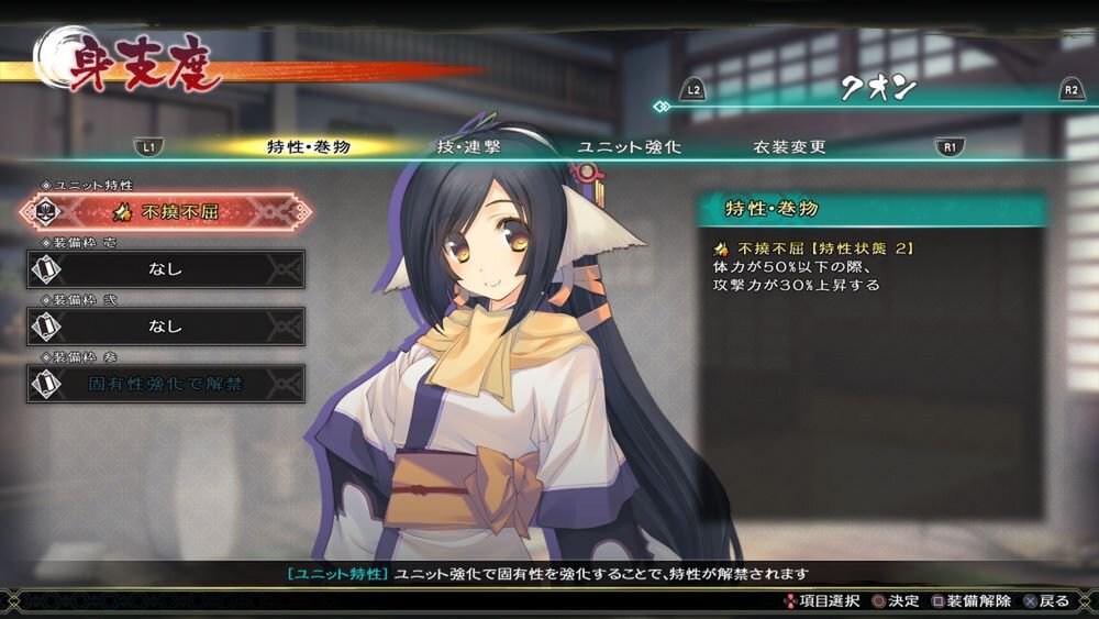 「ユニット特性」は、ユニットそれぞれが持つユニット固有の特殊効果。任務中、常に発動する持続系の効果や、特定の条件で発動する効果がある。