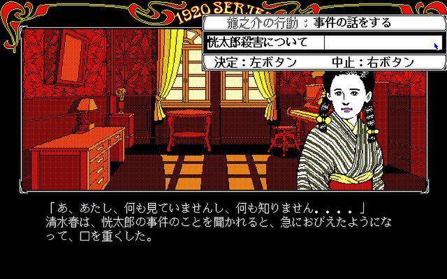 セピア調に彩られた大正ロマンの世界を舞台に、あなたは推理を働かせて難事件の解決に乗り出す。次々と発生する殺人事件の真犯人は? そして、その動機はいったい何なのだろうか。