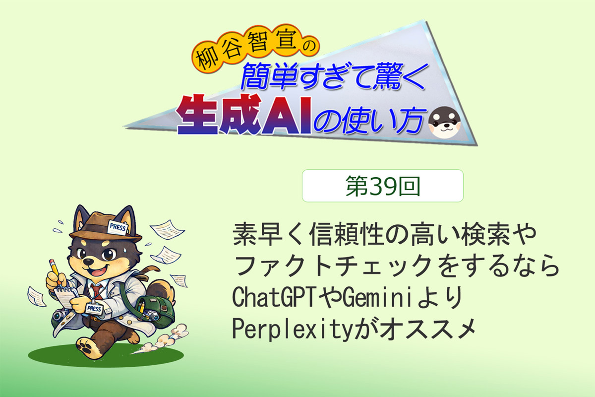 本連載は生成AIをこれから活用しようとしている方たちのために、生成AIの基本やコピペしてそのまま使えるプロンプトなどを紹介。兎にも角にも生成AIに触り始めることで、AIに対する理解を深め、AIスキルを身に着けて欲しい。第39回は検索特化型AI「Perplexity(パープレキシティ)」について解説する。