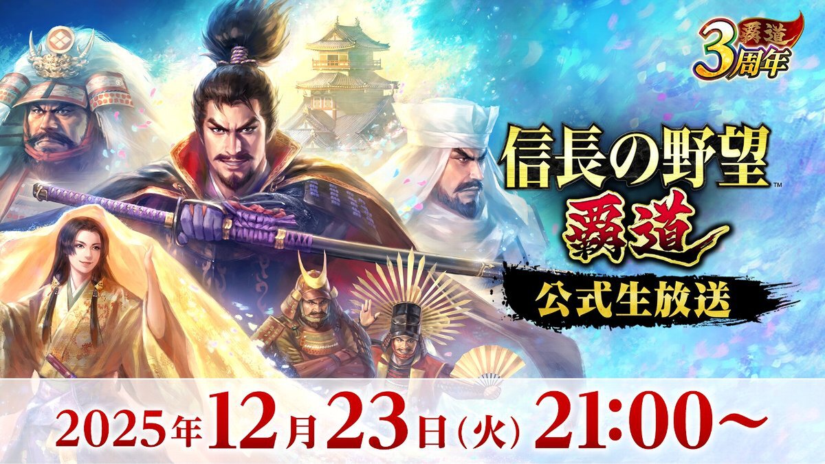 コーエーテクモゲームスは12月16日、iOS/Android/PC(Steam)でサービス中のMMO戦略シミュレーションゲーム『信長の野望 覇道』について、公式生放送の実施を決定したと発表。配信日時は、2025年12月23日21時より。